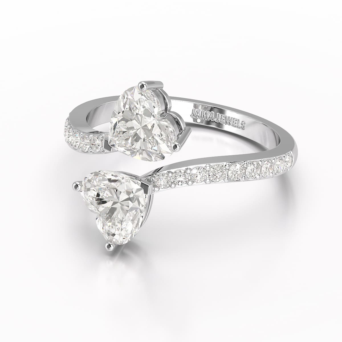 The 2.1 CT Double Heart Shaped Lab Diamond Ring by Jama Jewels is a stunning symbol of love and elegance. Featuring two heart-shaped lab diamonds set in a sleek band, this ring radiates brilliance and sophistication. Perfect for engagements, anniversaries, or special moments, it combines timeless design with ethically sourced, sustainable diamonds, making it a meaningful and beautiful choice.