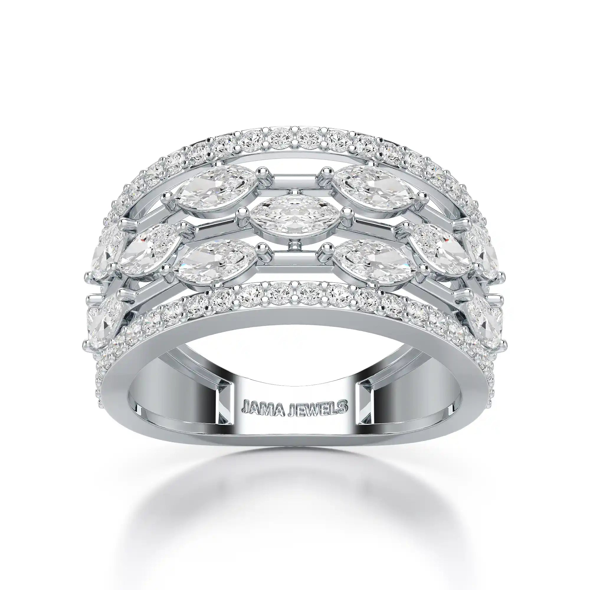 Experience unmatched brilliance with the 1.75 CT Five Row Ring featuring Marquise and Round Lab-Grown Diamonds from Jama Jewels. This stunning design showcases five intricately aligned rows of sparkling diamonds that radiate elegance from every angle. The unique combination of marquise and round cuts enhances light reflection, creating a captivating shimmer. Expertly crafted with precision and ethical craftsmanship, this ring is perfect for those who appreciate luxury, sustainability, and timeless sophistication—an exquisite statement for any occasion.