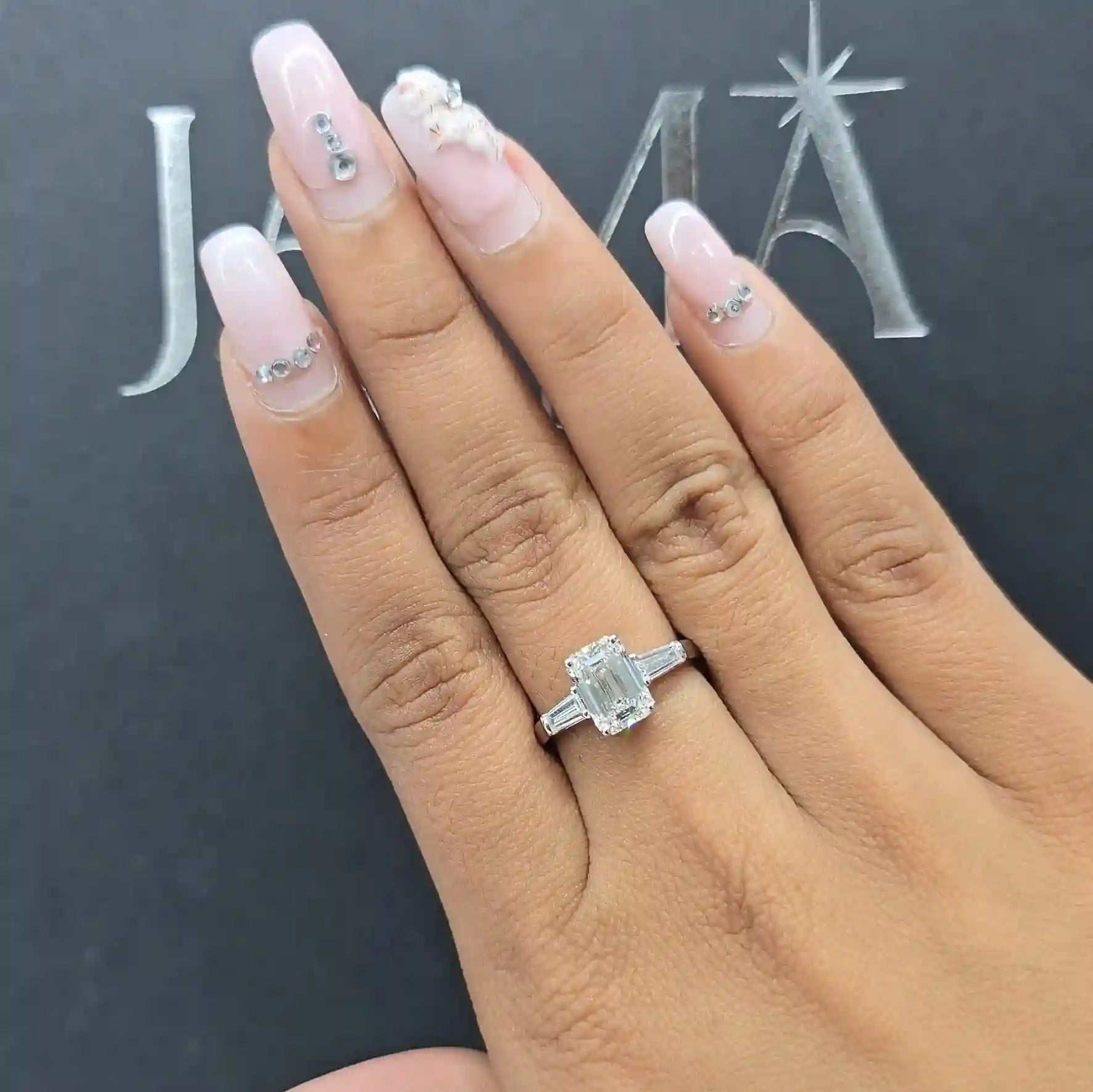 Elegant, balanced, and timeless, the 2.40 CT Lab Diamond Emerald & Taper Cut Three Stone Ring from Jama Jewels is designed to symbolize past, present, and future. Featuring a striking emerald-cut center lab-grown diamond flanked by sleek tapered side stones, this three-stone design offers refined brilliance with a modern edge. Expertly crafted and ready for delivery, the ring blends architectural lines with exceptional sparkle, making it perfect for engagements, milestones, or a sophisticated statement piece.