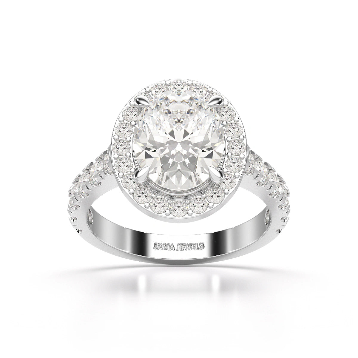 اكتشفي الأناقة الخالدة مع خاتم Jama Jewels من الألماس المقطوع بيضاوي الشكل والمُزخرف بحجر هالو لاب عيار 3.48 قيراط. تتميز هذه القطعة الرائعة بماسة مبهرّة مزروعة في المختبر ومقطوعة بيضاويًا بوزن 3.48 قيراط، محاطة بهالة من الألماس الصغير اللامع الذي يعزز بريقها وجاذبيتها. يوفر القطع البيضاوي شكلًا ظليًا ممدودًا أنيقًا، بينما يضيف إطار الهالة بريقًا إضافيًا ولمسة من السحر العتيق. صُنع هذا الخاتم بدقة، وهو مثبت على شريط أنيق يكمل القطعة المركزية، مما يجعله خيارًا مثاليًا للخطوبة أو الأحداث المهمة الخاصة. استمتعي بالفخامة المستدامة بخاتم يجسد جوهر الجمال والرقي.