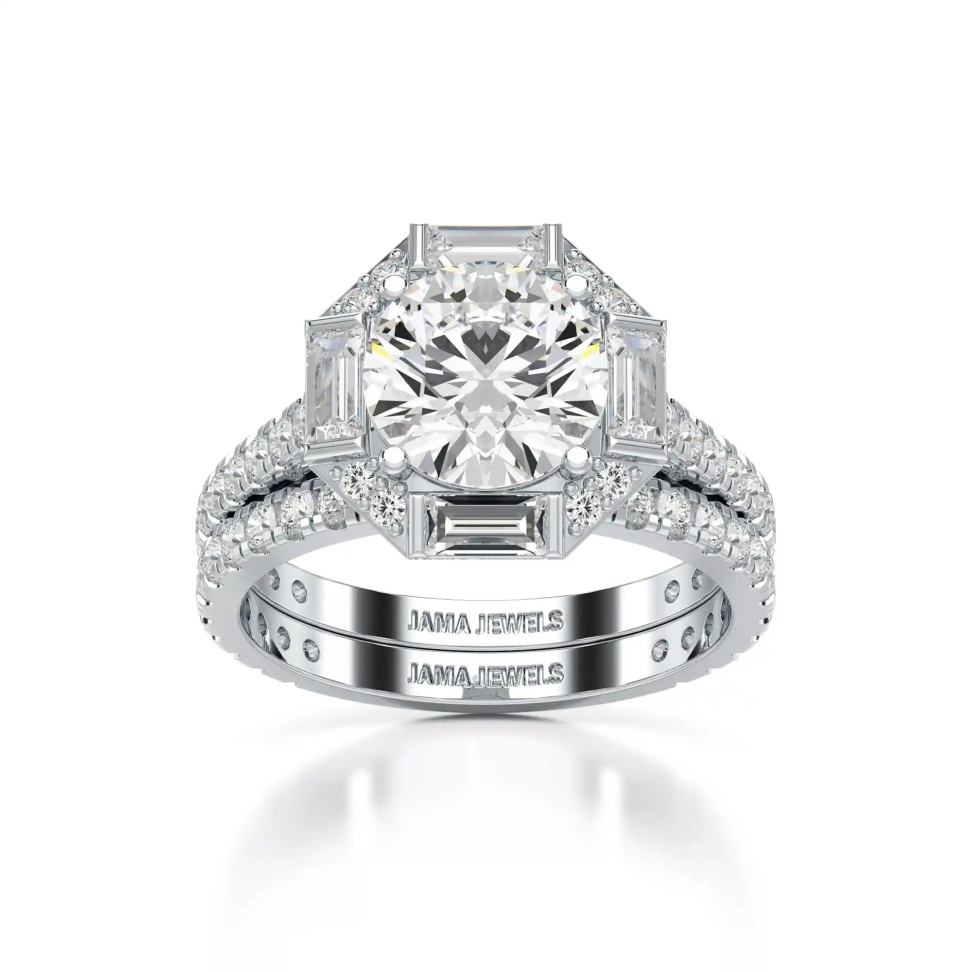 استمتعي بالجمال الراقي مع خاتم الماس من Jama Jewels بوزن 1.6 قيراط. يتميز هذا الخاتم بوجود ماسة مختبرية رائعة مقطوعة على شكل وسادة في قلبه، وهو محاط بهالة من الماس المتلألئ الذي يزيد من إشراقه. يعزز الشريط المصمم بخبرة الأناقة الشاملة، ويوفر توازنًا مثاليًا بين الفخامة والرقي الحديث. مثالي للحظات الخاصة أو كإضافة خالدة لأي مجموعة مجوهرات، يمزج هذا الخاتم المصنوع بأخلاقية بين السحر الكلاسيكي وبريق الماس المزروع في المختبر.