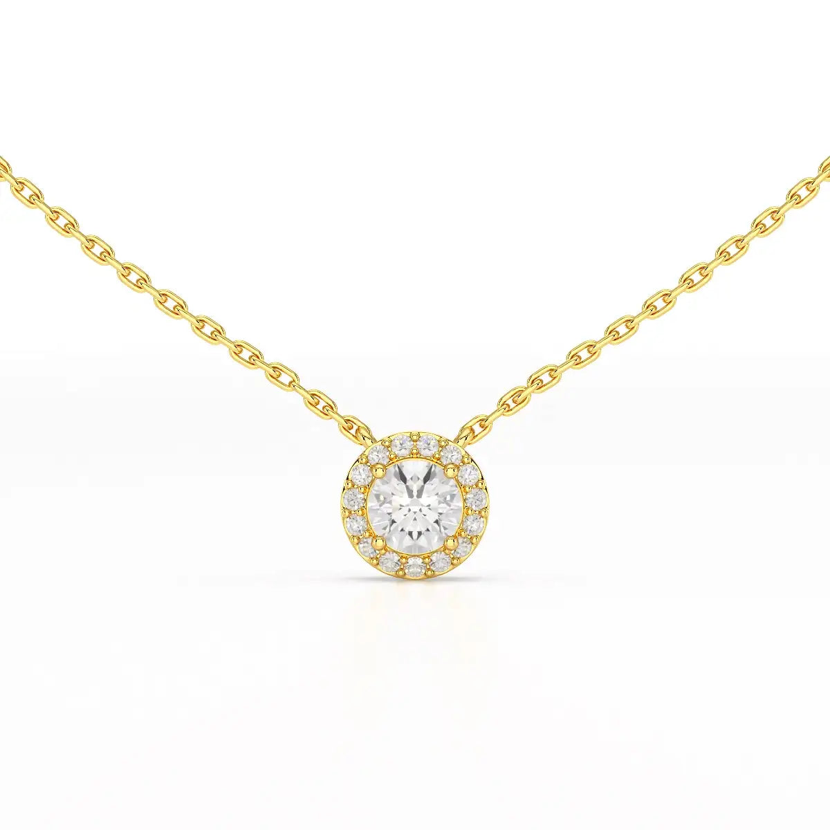 Make a statement of refined elegance with the 0.60 CT Round Cut Halo Lab Diamond Chain Pendant from Jama Jewels’ Fine Jewellery Collection. The center round-cut lab-grown diamond is beautifully encircled by a halo of smaller diamonds, enhancing its sparkle and radiance. Perfectly crafted for lasting beauty, this pendant combines ethical luxury with timeless design. Ideal for gifting or personal indulgence, it adds sophistication to any outfit, whether for daily wear or special occasions. Its versatile style allows it to shine alone or layered with other fine jewellery pieces for a modern, chic look.