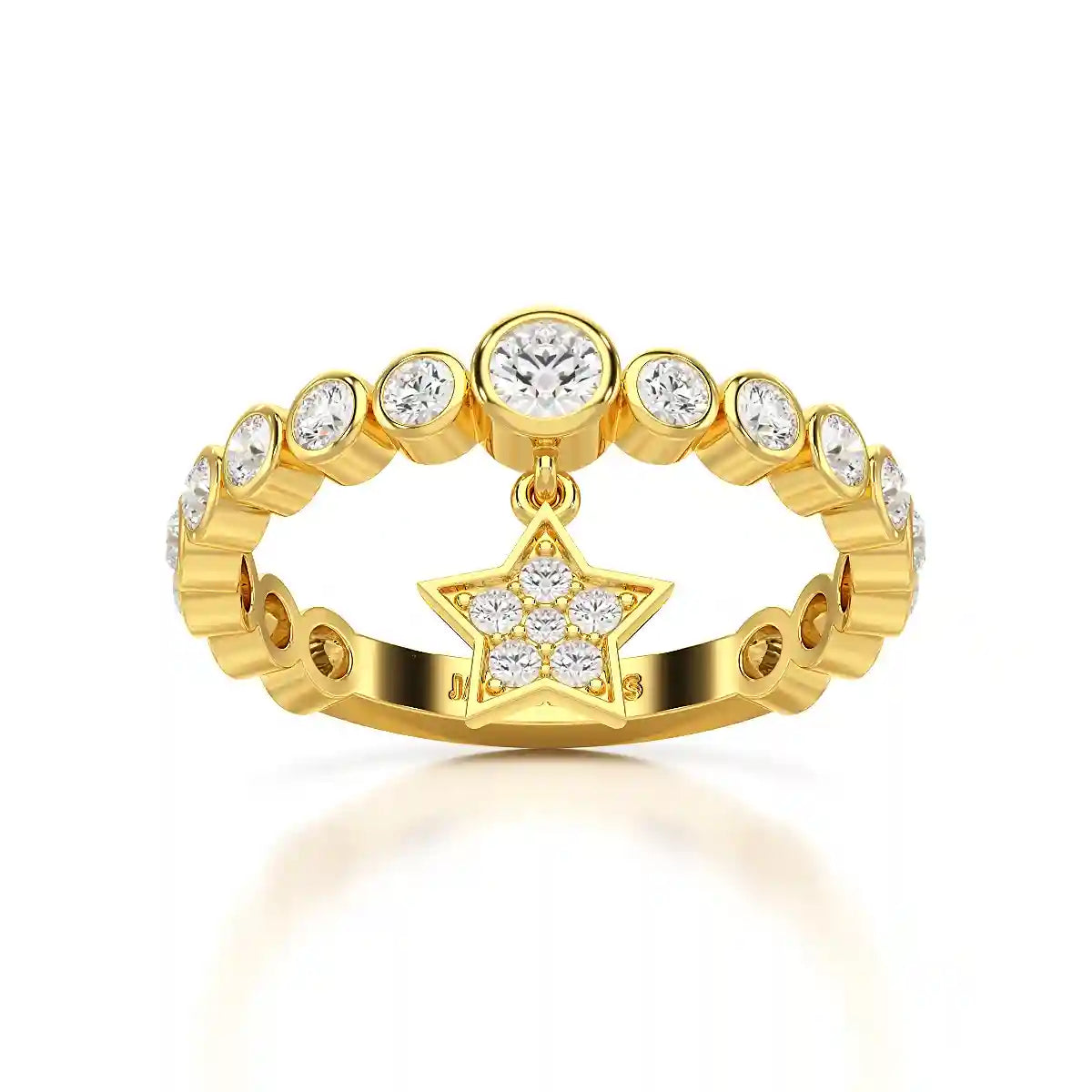 Radiating charm and elegance, this 0.70 CT Round Cut Lab Diamond Ring with a Dangling Star is a true statement of fine craftsmanship. The brilliant round lab diamond captures light beautifully, while the delicate star charm adds a whimsical touch of sparkle. Perfect for those who love modern yet timeless designs, this ring symbolizes both elegance and individuality. Ethically crafted with lab-grown diamonds, it offers sustainable luxury without compromise. Whether worn daily or reserved for special occasions, this piece is designed to complement your unique style and leave a lasting impression.