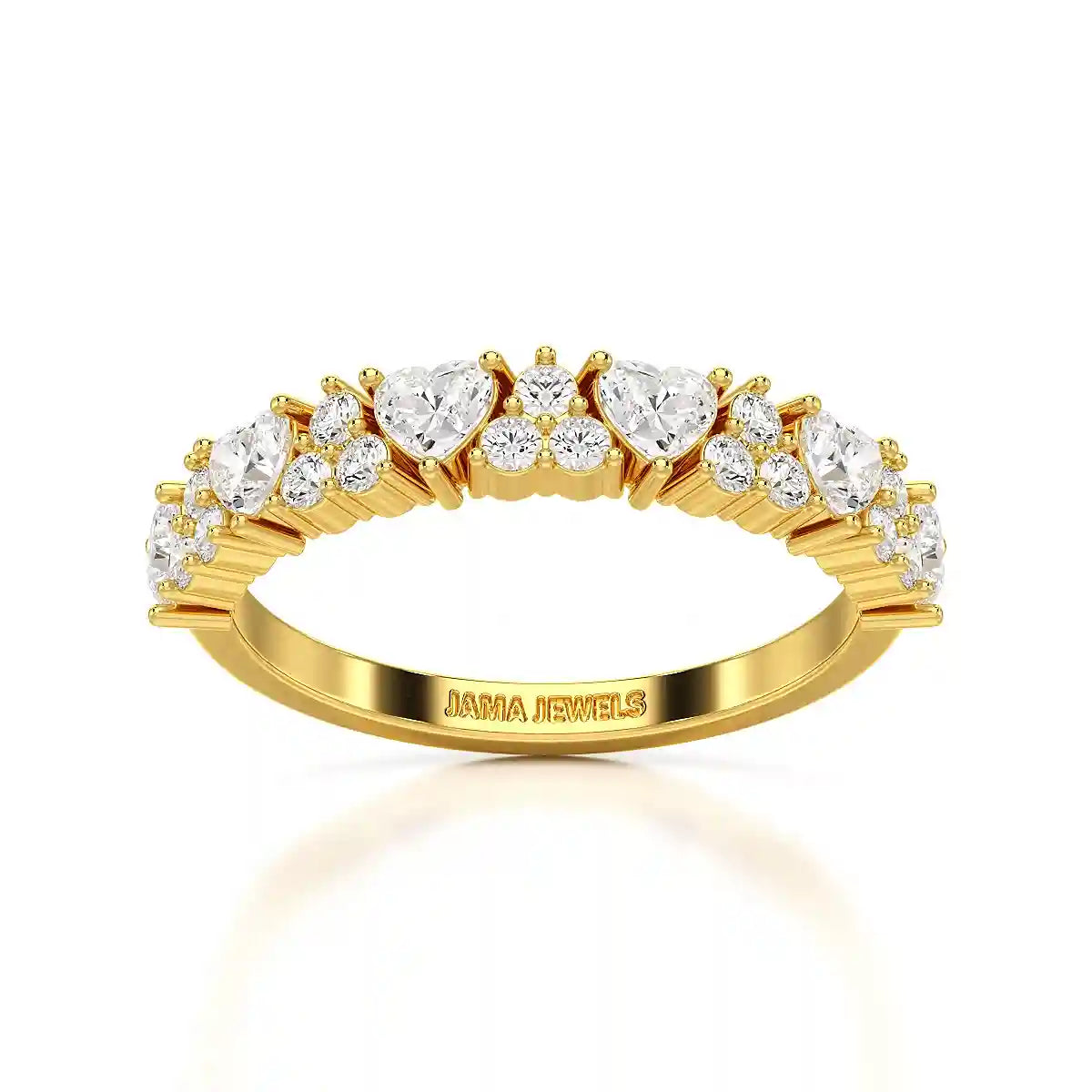 Celebrate timeless romance with this 0.8 CT Half Eternity Ring, featuring a captivating mix of round and heart-cut lab-grown diamonds. Expertly crafted for brilliance and comfort, this ring symbolizes everlasting love while offering an ethical, sustainable choice. Its delicate yet sparkling design makes it perfect for daily wear, special occasions, or as a meaningful gift. A true statement of elegance, beauty, and conscious luxury.