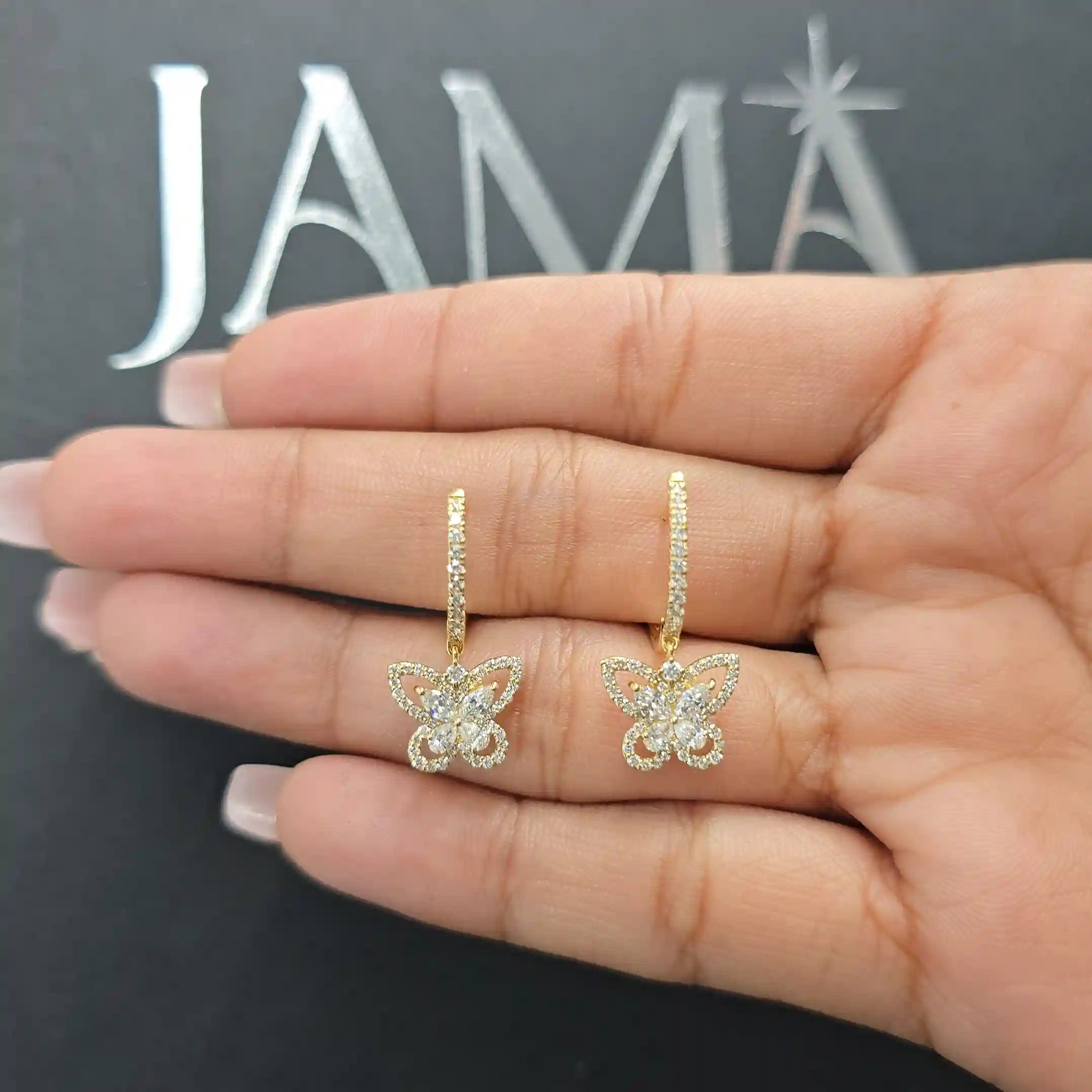 Delicate, graceful, and full of charm, the 0.95 CT Lab Diamond Butterfly Hoop Earrings from Jama Jewels are designed to celebrate elegance with a playful touch. Featuring a beautifully crafted butterfly motif adorned with sparkling lab-grown diamonds, these hoop earrings symbolize transformation, beauty, and freedom. Expertly crafted using ethically sourced lab diamonds, this piece offers exceptional brilliance while supporting sustainable luxury. Lightweight and versatile, they are perfect for both everyday wear and special occasions. Ready for delivery, these earrings make an ideal gift or a delightful addition to your jewelry collection.