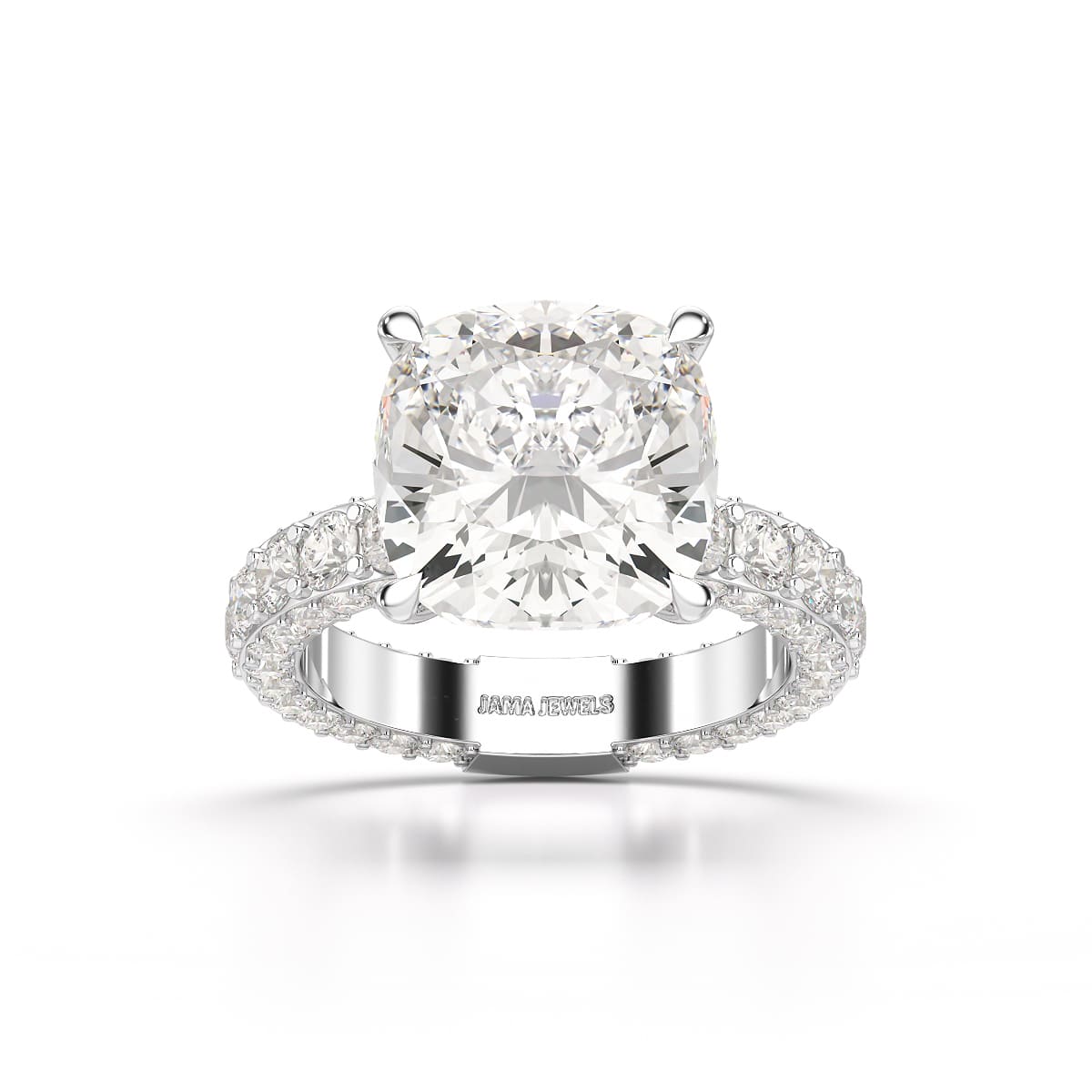 Experience unmatched elegance with Jama Jewels' 11 CT Lab Diamond Cushion Cut Ring, a true masterpiece designed for those who appreciate timeless beauty. This dazzling ring features a stunning cushion-cut lab diamond, meticulously crafted to enhance its brilliance and fire. The impressive 11-carat centerpiece sparkles with exceptional clarity and precision, embodying both luxury and sustainability. Set in a sleek band, this ring exudes sophistication, making it a perfect choice for engagements, special occasions, or adding a statement piece to your collection. Discover modern elegance with a sustainable twist at Jama Jewels.