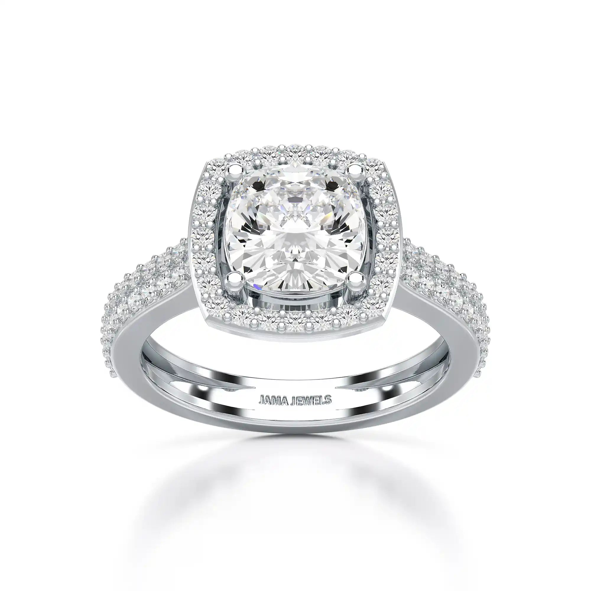 Indulge in refined luxury with the 2.50 CT Cushion Cut Ring with Round Diamonds from Jama Jewels—a masterpiece designed for those who appreciate timeless elegance. At its center sits a stunning cushion-cut lab-grown diamond, admired for its romantic shape and exceptional brilliance. Surrounding it, meticulously set round lab diamonds enhance the ring’s sparkle, creating a harmonious balance of classic and contemporary design.