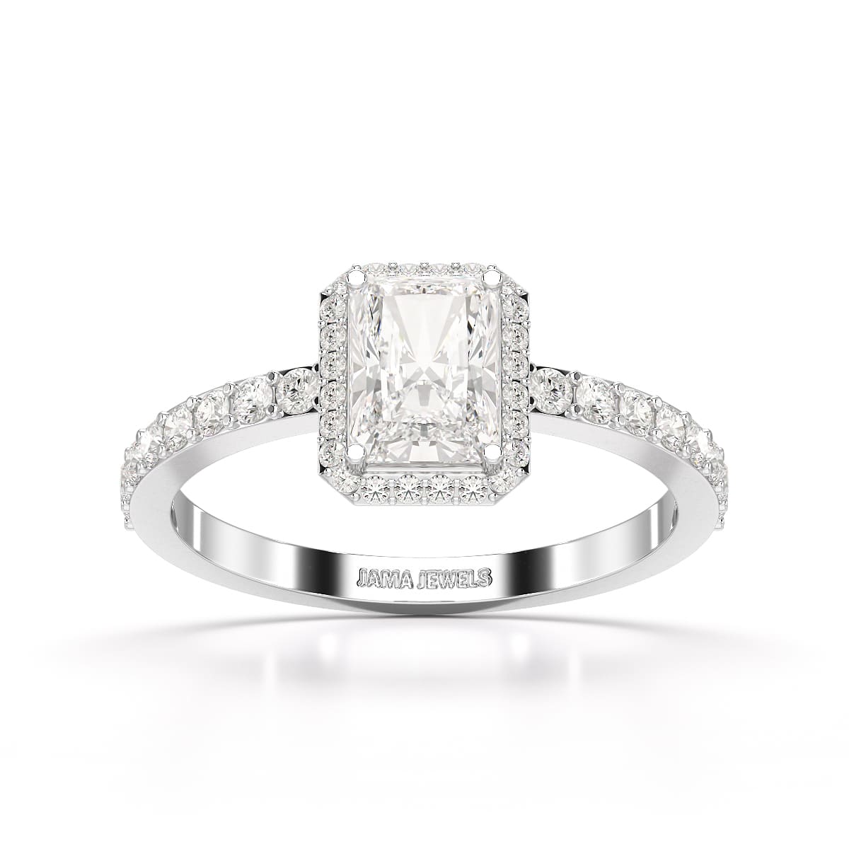 Unveil brilliance with the 3.61 CT Lab Diamond Radiant Cut Ring from Jama Jewels, a stunning symbol of luxury and sophistication. Featuring a dazzling 3.61 CT lab-grown diamond in a radiant cut, this ring combines the elegance of emerald shape with the fire of a brilliant cut. The result is an exceptional display of sparkle and light from every angle. Crafted with precision, the sleek band enhances the center stone's brilliance, making it the perfect choice for engagements or milestone celebrations. With sustainability at its core, this radiant cut ring from Jama Jewels is a true statement of modern elegance.