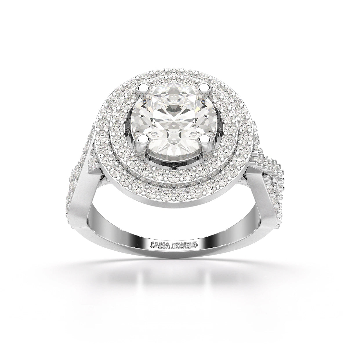 The 3 CT round cut layered halo lab diamond ring by Jama Jewels is a masterpiece of elegance and luxury. This ring showcases a dazzling round cut center stone, beautifully accentuated by a layered halo of sparkling diamonds, enhancing its brilliance. Designed for those with a taste for refined beauty, this lab diamond ring offers timeless appeal and unparalleled craftsmanship, making it a perfect statement piece for any occasion.